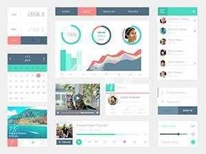 这是一套比较完整扁平化UI,主要以绿色为主,粉色,暗灰色为辅,干净整洁,看上去非常舒服。该UI套件包含了导航、人物列表、日历、视频播放、音乐播放器、登录框等等。